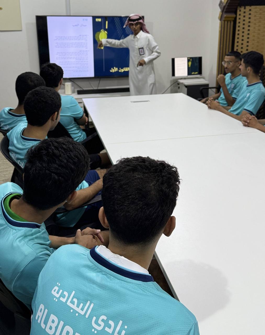 📅 التاريخ: 14 اكتوبر 2025 📍 المكان: قاعة الاجتماعات بنادي البجادية 🎙 المحاضر: نايف محمد العتيبي 💼 صفته: المدير التنفيذي لكرة القدم في خطوة هامة لتعزيز المعرفة بالقوانين الرياضية، أقيمت ورشة عمل لتوعية لاعبي فئة الشباب بأهم قوانين كرة القدم، ضمن الربع الأول للموسم الرياضي 2026/2025. الورشة ركزت على تعزيز فهم اللاعبين للقوانين وتطبيقها بشكل صحيح داخل الملعب، مما يسهم في تحسين أدائهم الفني والتكتيكي.